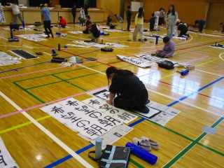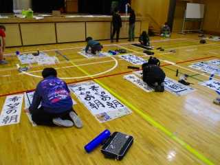3年生以上は体育館で席書会に取り組んできました。