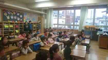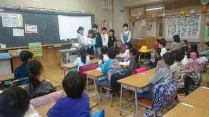入学から4日目、1年生の各クラスでは「1年生応援プロジェクト」と題して、新6年生が1年生のために活躍しています。 始業までの間、登校後に朝の準備を手伝ったり読み聞かせやクイズで和ませたり……給食が始まると掃除を教えたりすることも……。 6年にとっても、最高学年としての意識を高めていくための大切な取組です。1年生、お兄さんお姉さんが付いてるから安心です! がんばれ6年生!